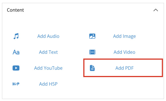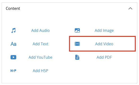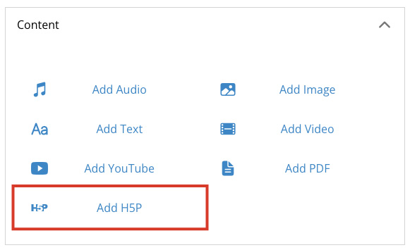 Select the Add H5P button to add a link to your created H5P content.