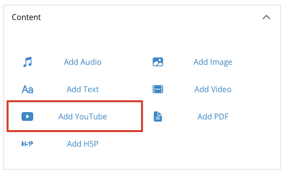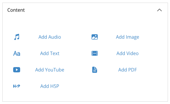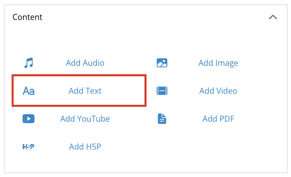 Add H5P allows you to add an H5P embed to the page to include interactive elements on the page. H5P content creation must be done separately outside of T-BIDS, this feature only allows you to embed already created content.)