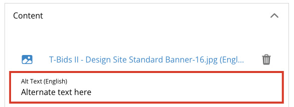An accessibility option that allows you to add a few lines of text to describe an image to users using a screen reader. While not required, it’s recommended to help increase accessibility.
