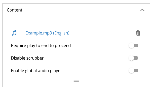 This option will require the user to listen to all of the audio before they can move on to the next page.