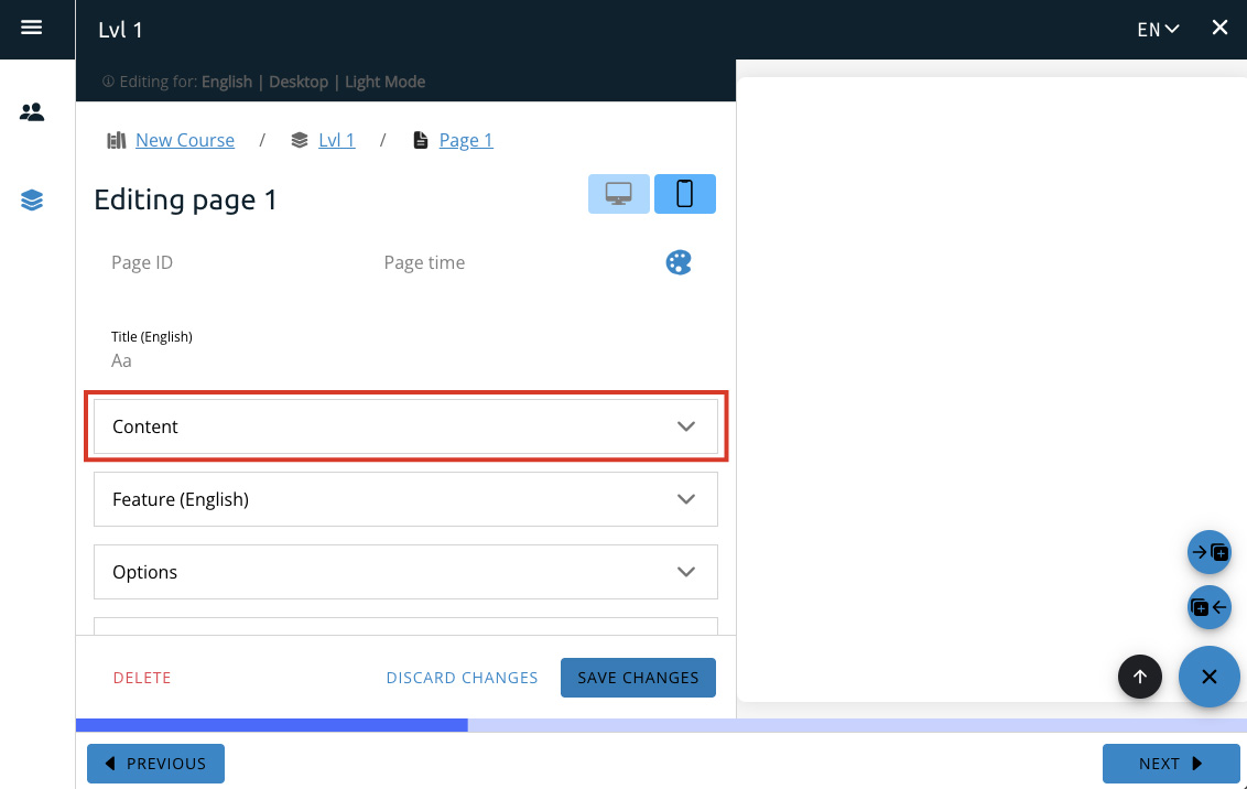 To access the Pages Editor go to the page you want to edit and click the pencil icon at the bottom right to open the editor.