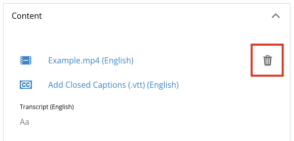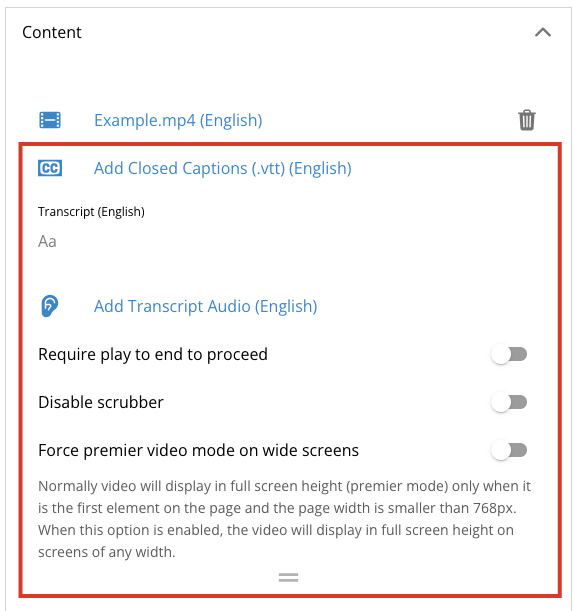 Add Closed Captions — You can add closed captions to a video by uploading a .vtt file here.