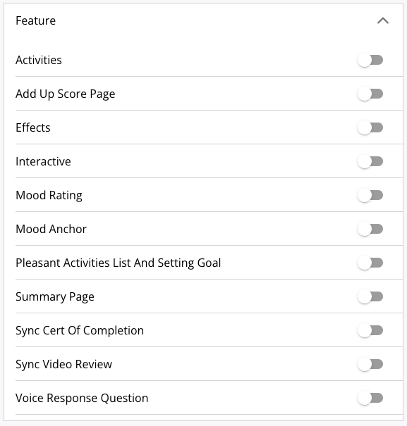 By default, the only available features are Add Up Score Page, Effects, and Summary Page. While additional features are tailored to specific projects, this guide will provide a brief overview of each feature.