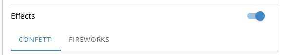 Effects will add animations over the top of page content. There are currently two options, one with confetti effects that includes a short musical jingle, and a second with a fireworks animation effect.