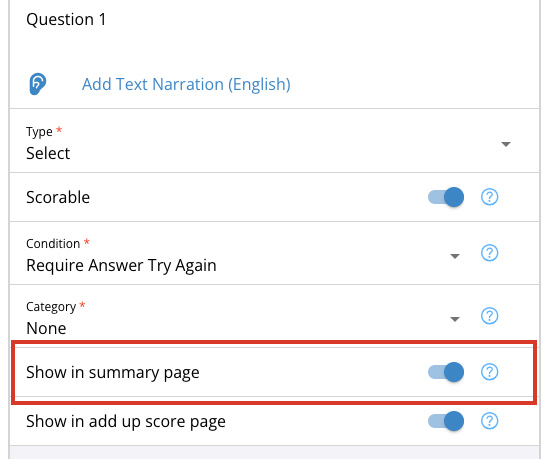 The Summary Page feature must be selected on a page after the questions you want to appear on the page.