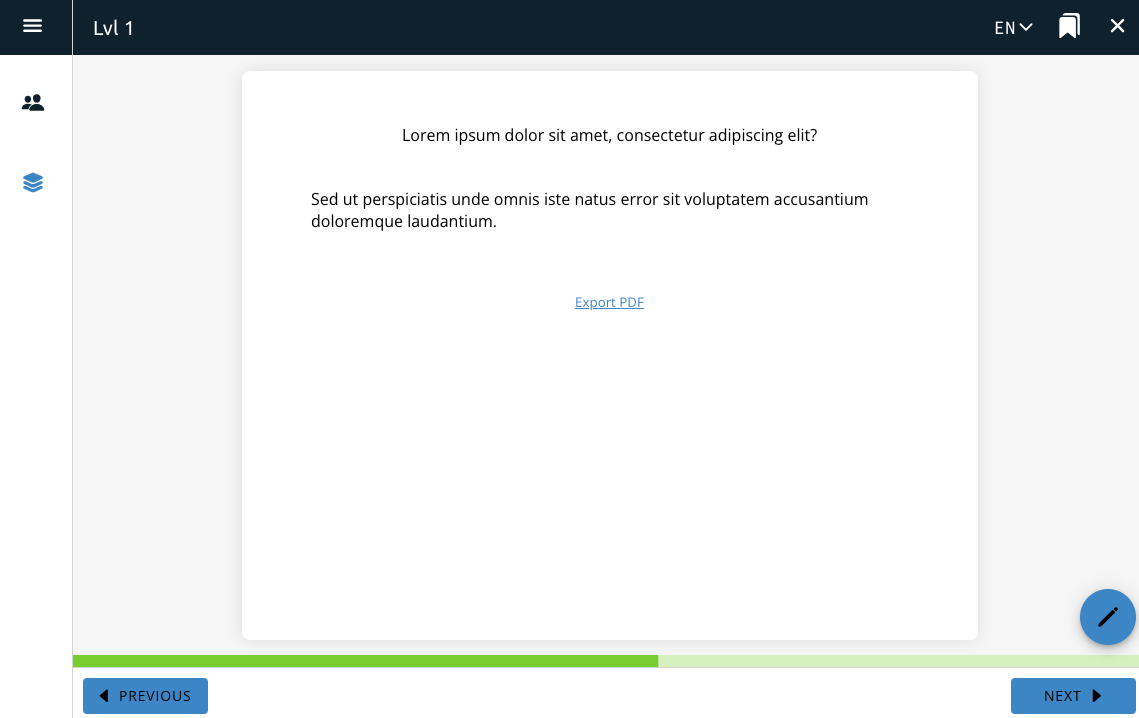 The quiz questions will show up in a list that the user cannot edit. The user can also download a PDF of the questions for later viewing.