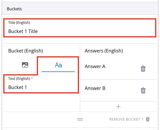 The bucket question type has users choose from a selection of answers and match them to one of 2-4 different “buckets”. These buckets can be image or text, while the answers can only be text.