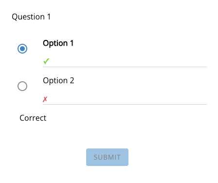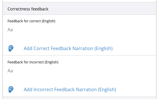 An accessibility option allows you to upload an audio file version of the text that will display as an audio icon next to the feedback text that users can click and listen to. Audio files for correct and incorrect can be added individually.