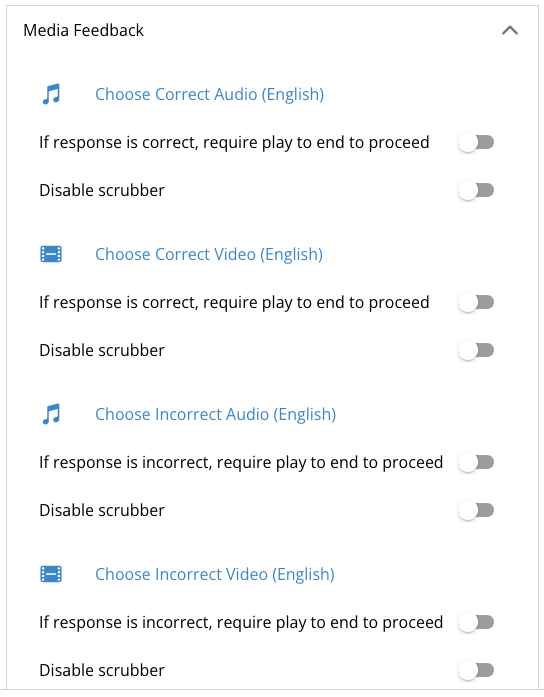 Here, you can upload correct and incorrect audio or video. Click on the header for the feedback you wish to upload and select the file from your desktop.