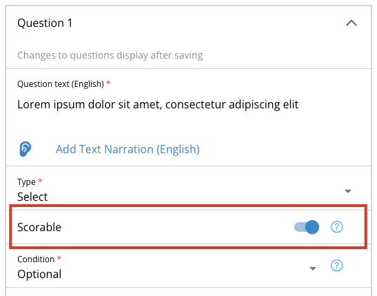 When selected this will give the question correct/incorrect feedback (unless those options are hidden.) The scorable option is a requirement for questions used in branching and the level quiz review.
