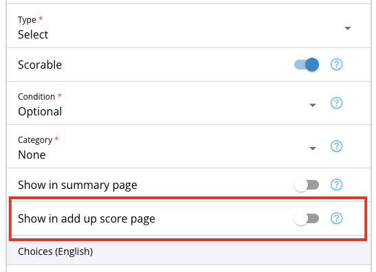 If a question has been selected as scorable, a choice must be selected as correct. The Select and Dropdown types can only have one choice, but the Check type can have multiple selections.