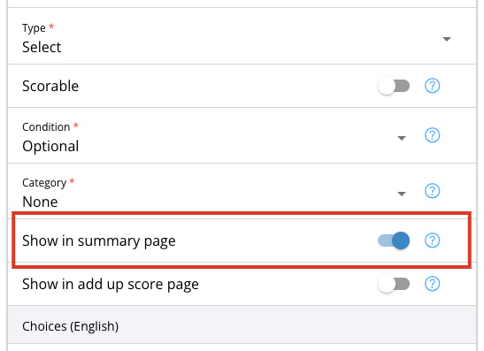 If the show in summary page option is selected, the question will appear on the next page in the level that has the Summary Page feature enabled.